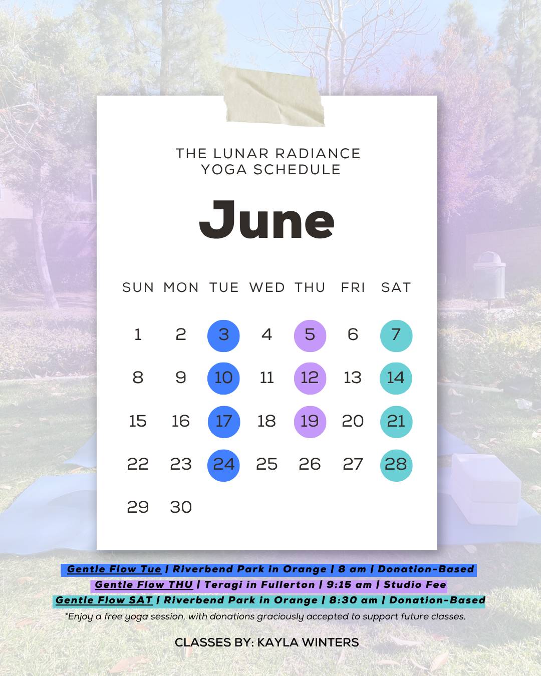 Yoga in The Park July Yoga is Here — Let’s Flow Together! Hello Reader, Can you believe July is already here? Summer is the perfect time to slow down, reconnect, and soak in some movement under the sun (or the moon 🌙). Whether you're looking to start your yoga journey or deepen your practice, we've got space for you in our growing Lunar Radiance community. 🌿 Here's What's Happening in July: 🧘♀️ Yoga in the Park — Riverbend Park, Orange • Tuesdays: Please note that times are rotating this...